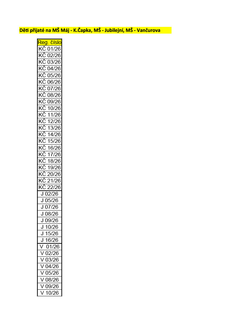 SEZNAM PŘIJATÝCH DĚTÍ PRO ŠKOLNÍ ROK 2025/26