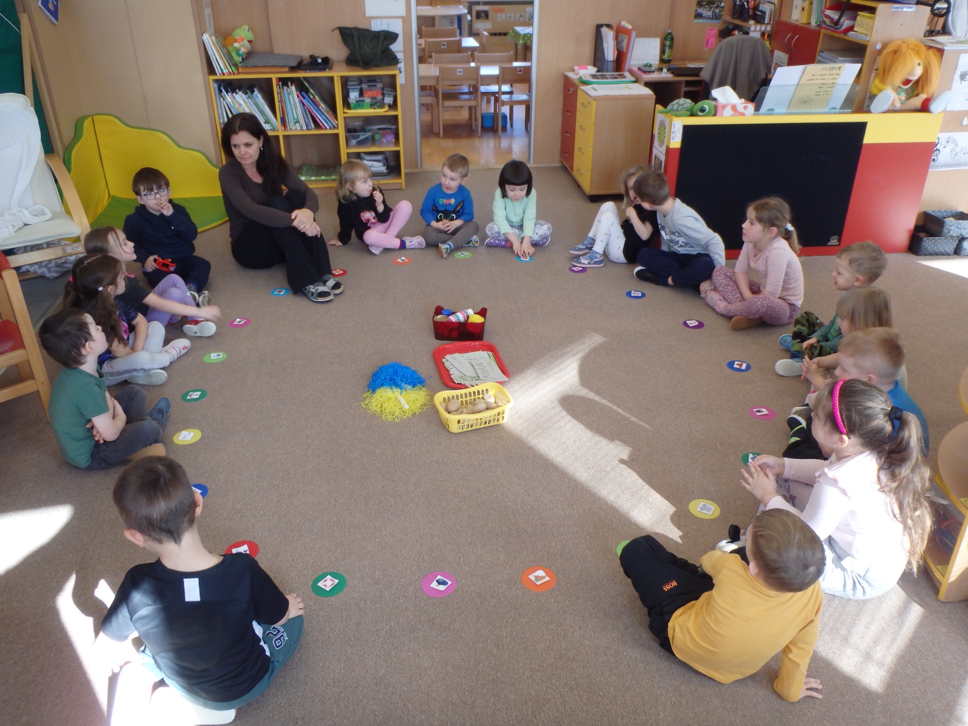 V březnu jsme se s dětmi věnovali tématu lesa a přírody. Děti se seznamovaly se stromy, lesními zvířaty i životem v lese. Ve výtvarných činnostech malovaly a kreslily stromy, tvořily z různých materiálů a pracovaly také s přírodninami, které využívaly k vlastnímu tvoření. Rozvíjely tak svou fantazii, tvořivost i jemnou motoriku. Součástí našich činností bylo také téma voda v lese a v přírodě. Děti si povídaly o významu vody, o tom, kde ji v přírodě najdeme, a své poznatky ztvárňovaly různými výtvarnými technikami. Věnovali jsme se i lesním zvířatům, která děti poznávaly, napodobovaly a zapojovaly do dramatických her. Tyto aktivity podporovaly jejich představivost, vyjadřování i spolupráci ve skupině. Nechyběla ani cvičení na rozvoj sluchového vnímání a jemné motoriky. Během měsíce nás dvakrát navštívilo divadlo, které dětem přineslo hezký kulturní zážitek. Některé činnosti jsme realizovali také venku, kde děti skládaly mandaly z přírodnin a vnímaly krásu okolní přírody. Celý měsíc byl plný tvoření, objevování a prožitkového učení, které si děti velmi užily.