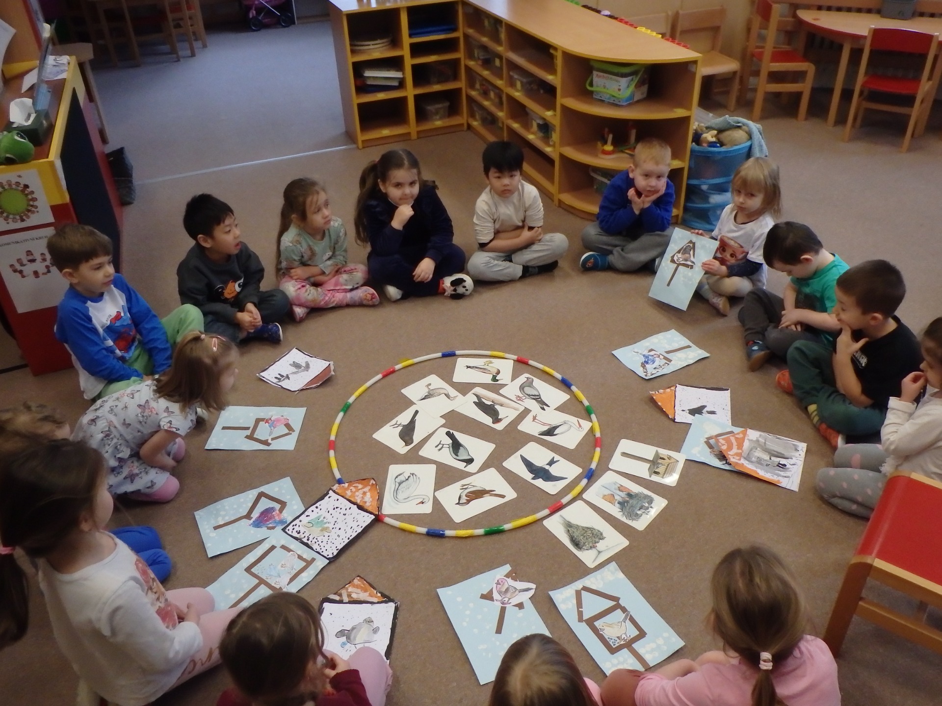 Únor jsme v naší třídě prožili ve znamení zimy. S dětmi jsme si povídali o zimní přírodě a hlavně o ptácích, kteří u nás zůstávají i během chladných měsíců. Děti se seznamovaly s různými druhy ptáků pomocí obrázků a knih, učily se je poznávat a společně jsme si o nich vyprávěli. Ve výtvarných činnostech děti ptáčky kreslily, malovaly a také vyráběly papírové ptačí budky. Při práci rozvíjely svou fantazii, jemnou motoriku i radost z tvoření.