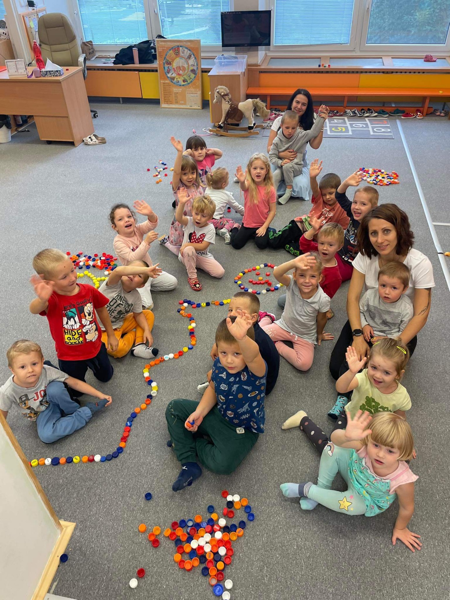 V prvních dnech jsme se s dětmi seznamovali s naší třídou a vytvořili si společně pravidla, díky kterým se nám ve školce bude líbit. Abychom se lépe poznali a naučili se jména svých kamarádů, hráli jsme různé hry.