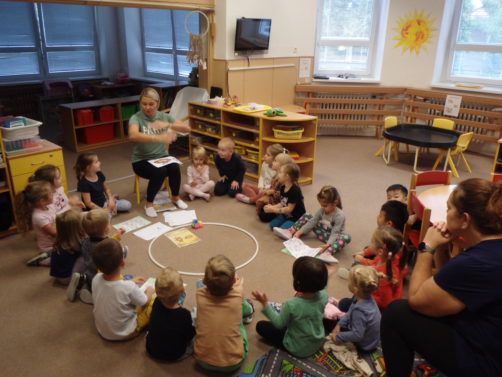 Společně jsme si povídali o pravidlech, která nám pomáhají, abychom se měli ve školce hezky. Děti se postupně začaly orientovat v denním režimu, učily se spolupracovat, navazovat nová přátelství a rozvíjet se po všech stránkách.