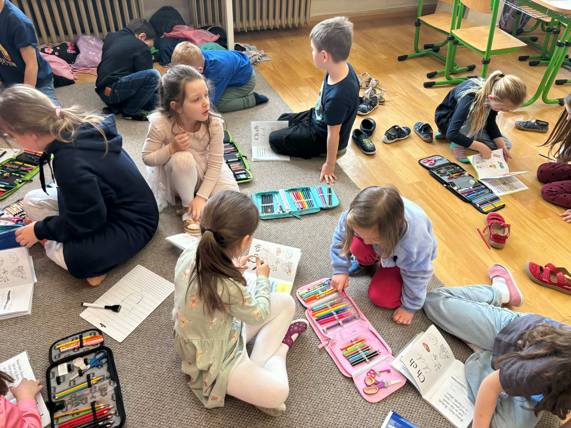 Třída Želviček dnes navštívila 1. třídu v ZŠ Jubilejní. Pro děti to byla skvělá příležitost nahlédnout do školního prostředí a vyzkoušet si, jak probíhá skutečná výuka.