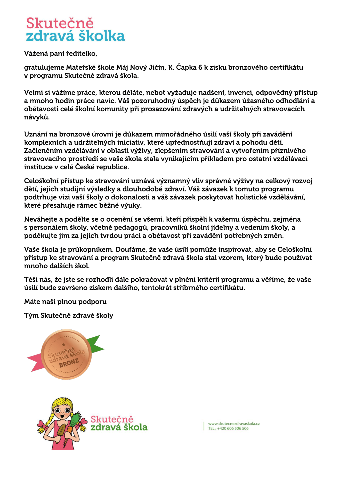 Naše mateřská škola se zapojila do projektu Skutečně zdravá škola, který nabízí dětem jídlo, které je chutné, zdravé a připravené z kvalitních surovin.
